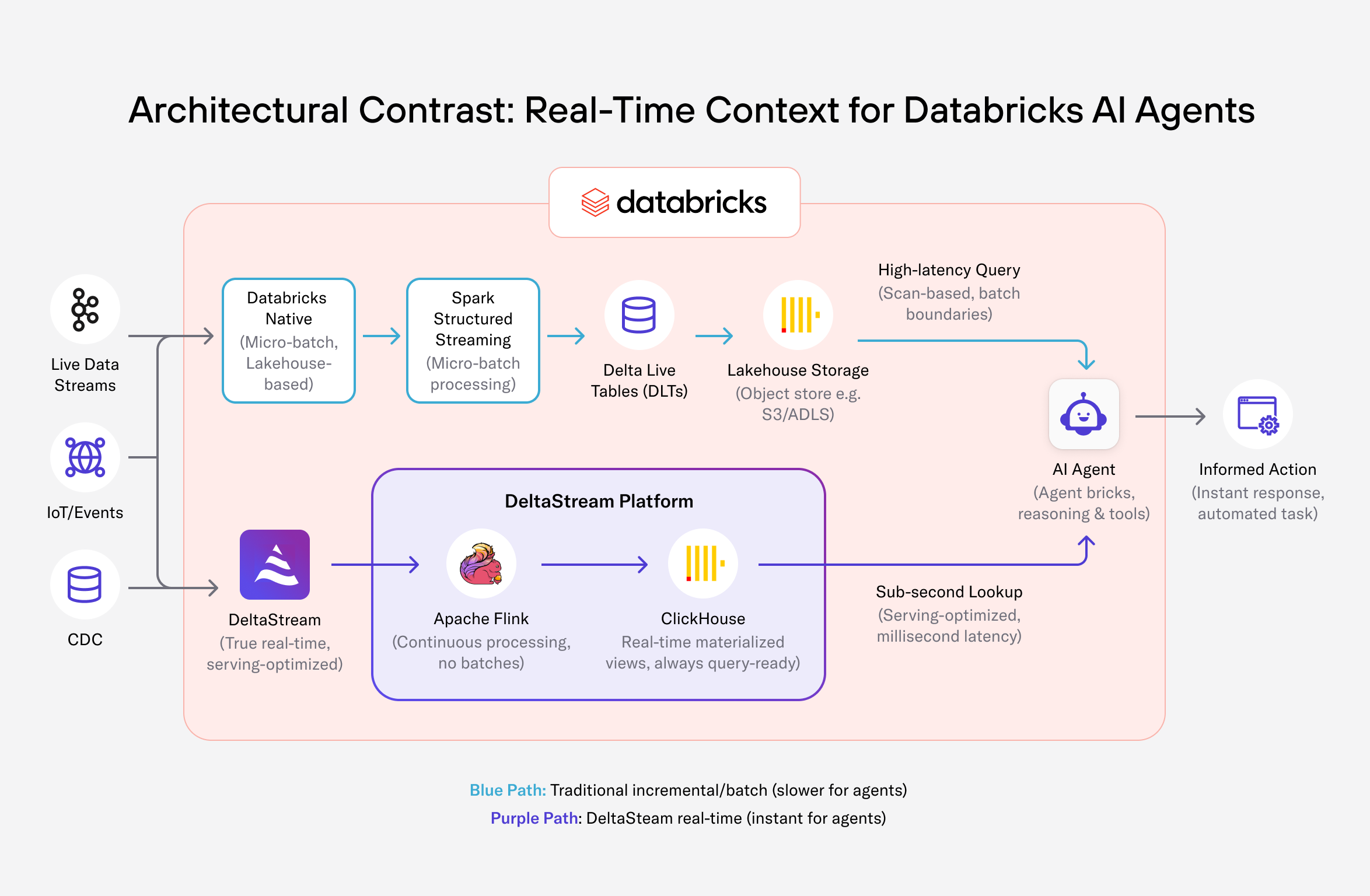 Structured Streaming and Delta Live Tables are excellent for incremental analytics. But when agents need fast, concurrent, inference-time access to continuously updated context, micro-batch pipelines and lakehouse tables become the bottleneck.